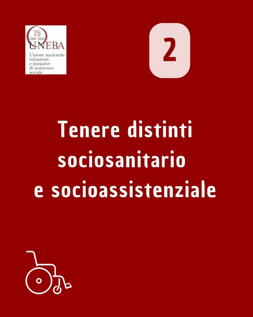 - Mantenere la distinzione tra servizi socioassistenziali (per persone con fragilità o parziale autosufficienza) e servizi sociosanitari (per persone non autosufficienti: ad esempio, le Rsa)