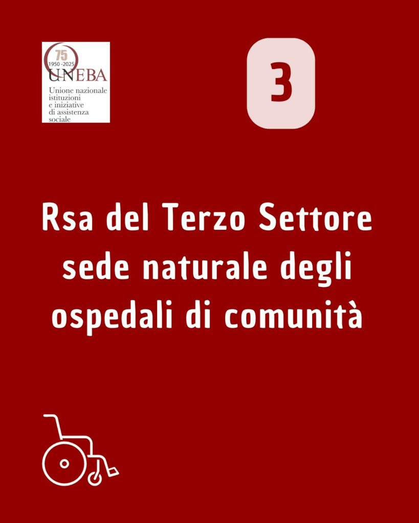 - Riconoscere il ruolo delle Rsa del Terzo Settore come sede naturale degli ospedali di comunità, evitando sovrapposizioni