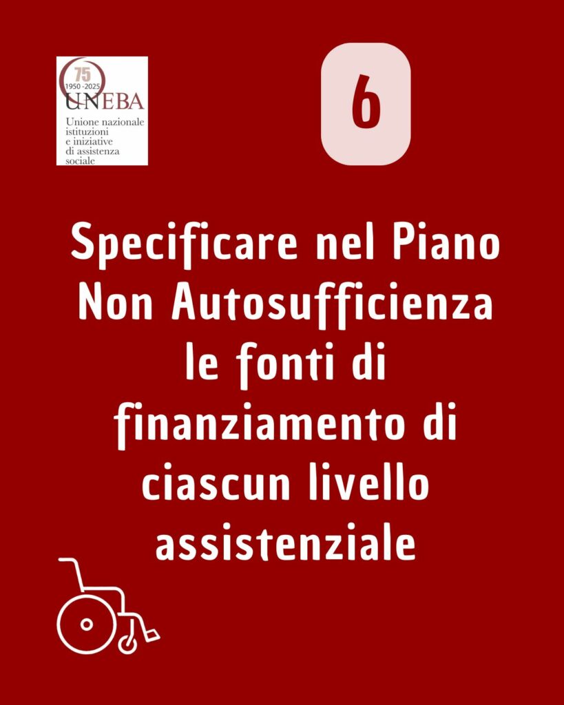 - Specificare nel Piano Non Autosufficienza le fonti di finanziamento di ciascun livello assistenziale